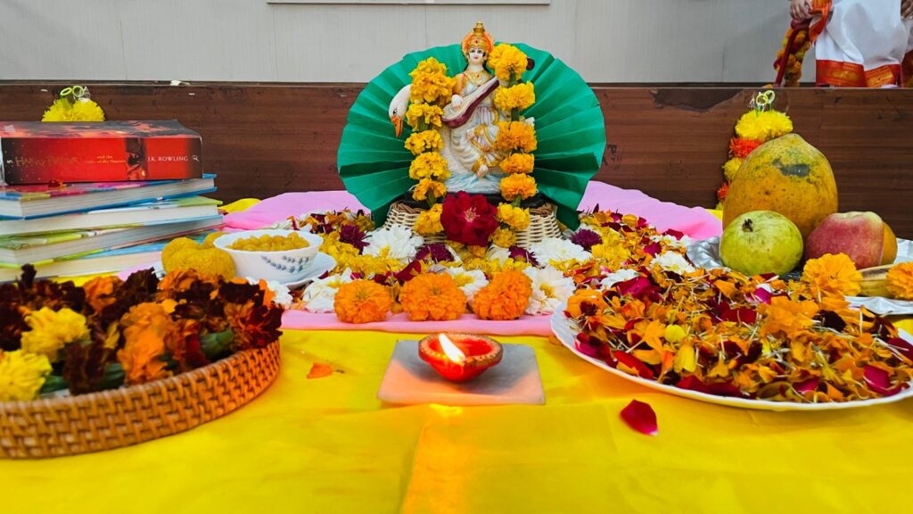 The celebration began on a divine note as Hinaya (Grade 3), beautifully dressed as Maa Saraswati, blessed everyone and set a serene atmosphere of knowledge and wisdom 🌼📚